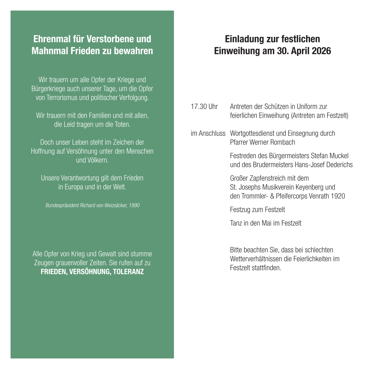 Einweihung des Ehrenmals am 30.04.2026